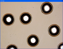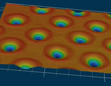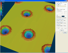 | 激光微火山口加工效果圖 | 激光微火山口加工效果圖 | 微火山口加工效果圖,深度5um | 鐳射效果測量圖 |